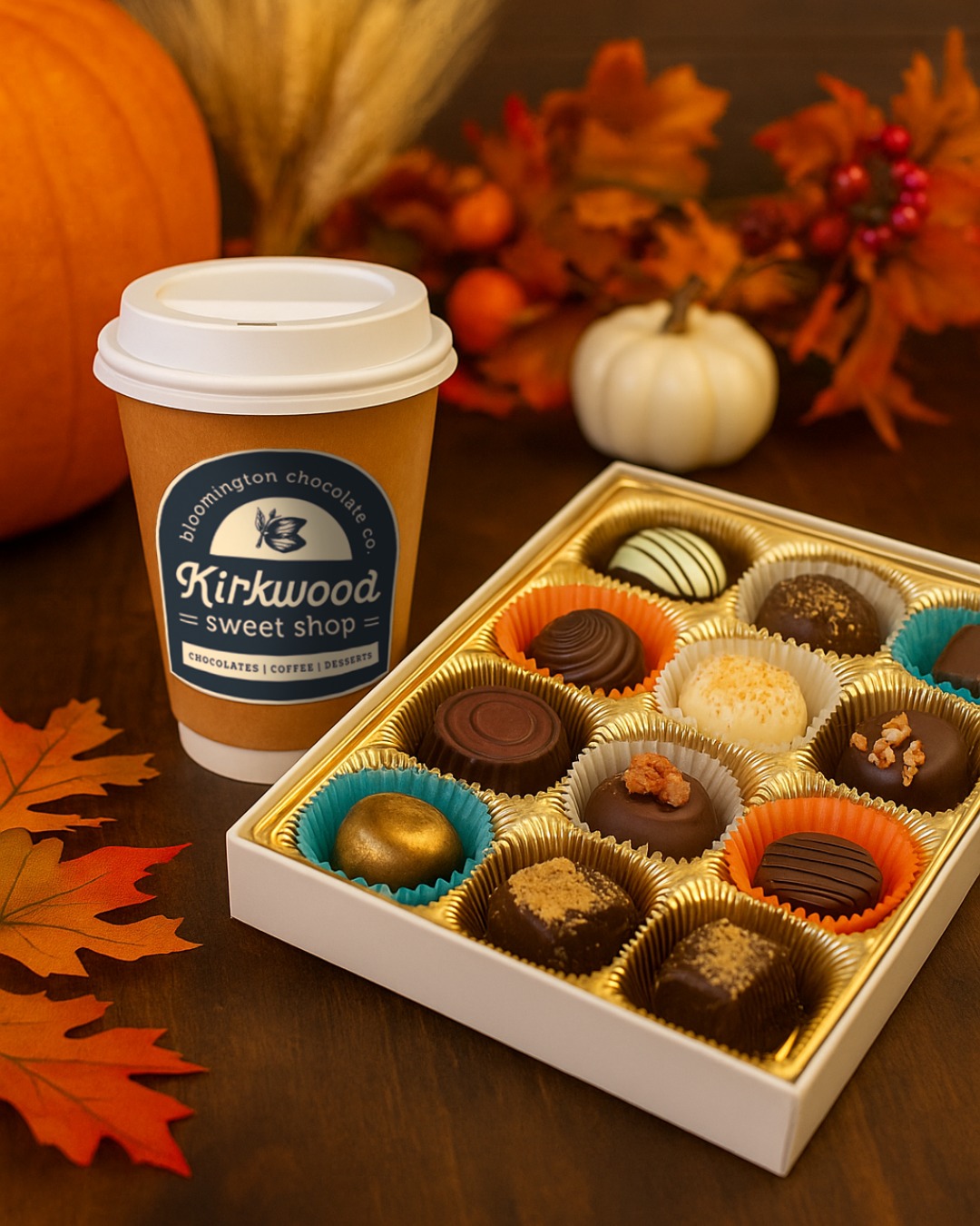 Kirkwood Sweet Shop by Bloomington Chocolate Company is pleased to present our cozy cafe - offering their very own handmade and hand decorated Truffles! They also offer coffee, brownies, cookies, cakes, and specialty desserts. As always, they stand on quality and flavor, and are excited to add desserts to the line up of delicious offerings. They are just getting started on this journey, so check back often to see what they are up to!
